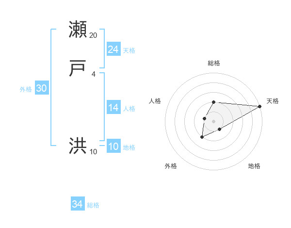 瀬戸 洪さんの天格は24画の5点!