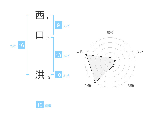 西口 洪さんの総格は19画の1点!