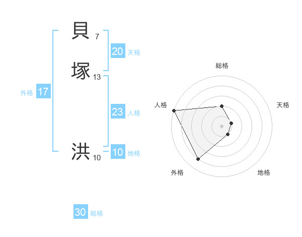 貝塚 洪さんを姓名の画数から五運を鑑定