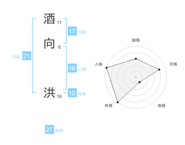 酒向 洪さんを姓名の画数から五運を鑑定