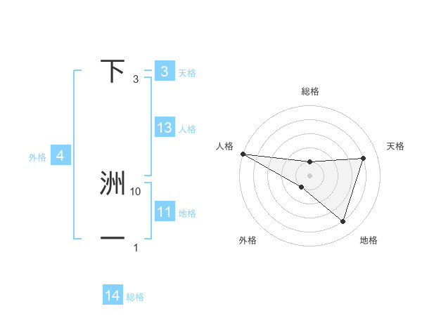 下 洲一さんの総格は14画の1点!