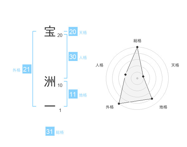 宝 洲一さんの外格は21画の5点!