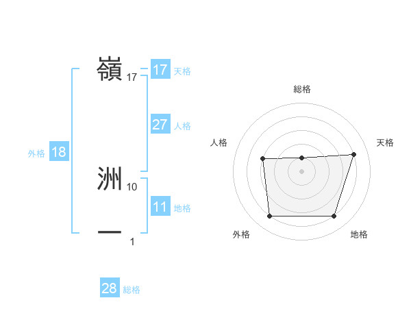 嶺 洲一さんの人格は27画の3点!