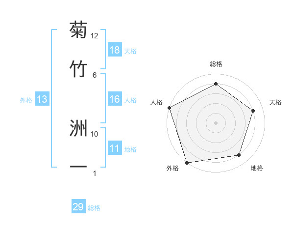 菊竹 洲一さんの総格は29画の4点!