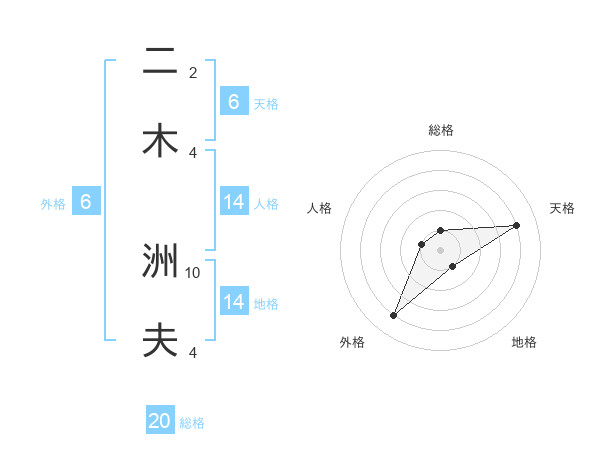 二木 洲夫さんの天格は6画の4点!