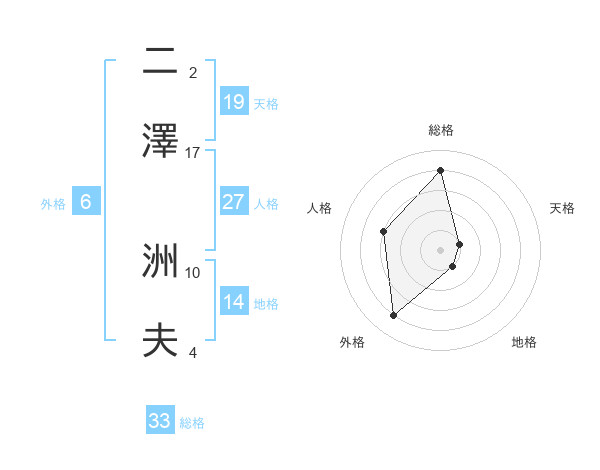二澤 洲夫さんの総格は33画の4点!