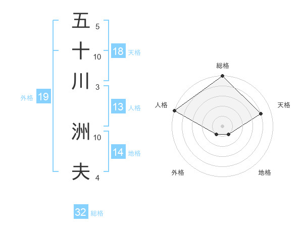 五十川 洲夫さんを姓名の画数から五運を鑑定