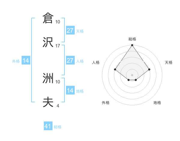 倉沢 洲夫さんを姓名の画数から五運を鑑定