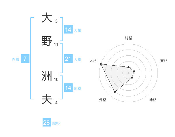 大野 洲夫さんを姓名の画数から五運を鑑定