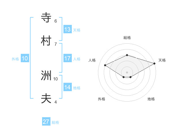 寺村 洲夫さんの天格は13画の5点!