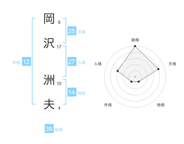 岡沢 洲夫さんの総格は39画の5点!