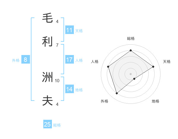 毛利 洲夫さんの天格は11画の4点!