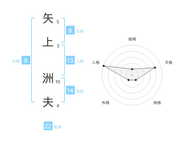 矢上 洲夫さんの天格は8画の4点!
