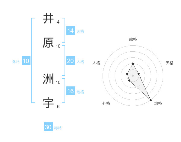 井原 洲宇さんを姓名の画数から五運を鑑定