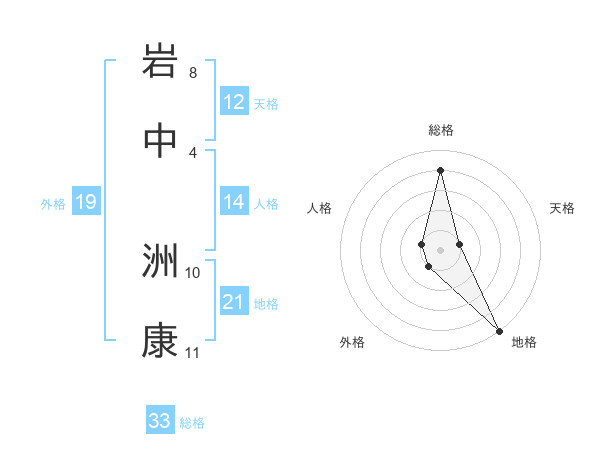岩中 洲康さんの総格は33画の4点!