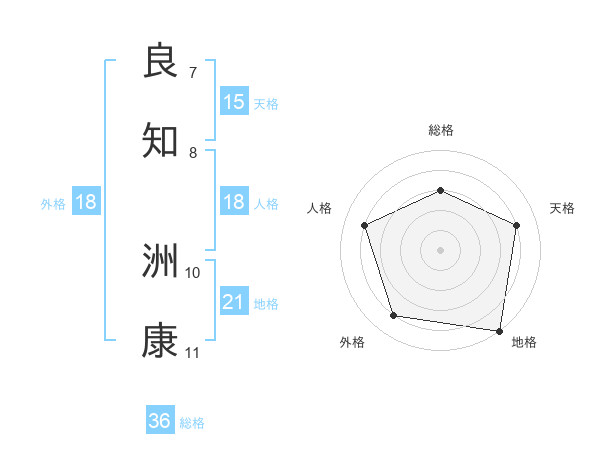 良知 洲康さんの天格は15画の4点!