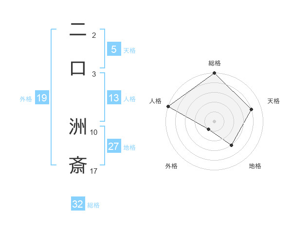二口 洲斎さんの総格は32画の5点!