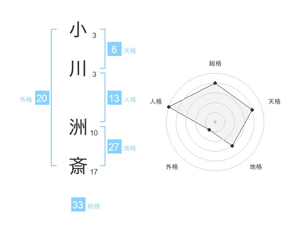 小川 洲斎さんを姓名の画数から五運を鑑定