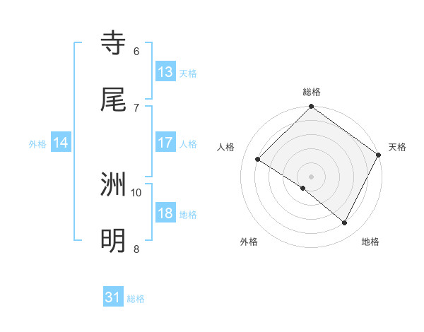 寺尾 洲明さんを姓名の画数から五運を鑑定