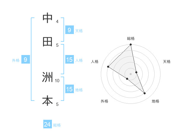 中田 洲本さんの総格は24画の5点