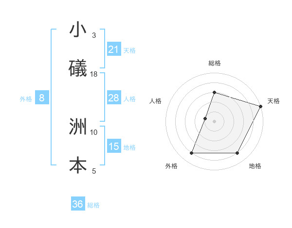 小礒 洲本さんの天格は21画の5点!