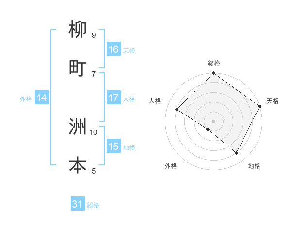 柳町 洲本さんの総格は31画の5点!