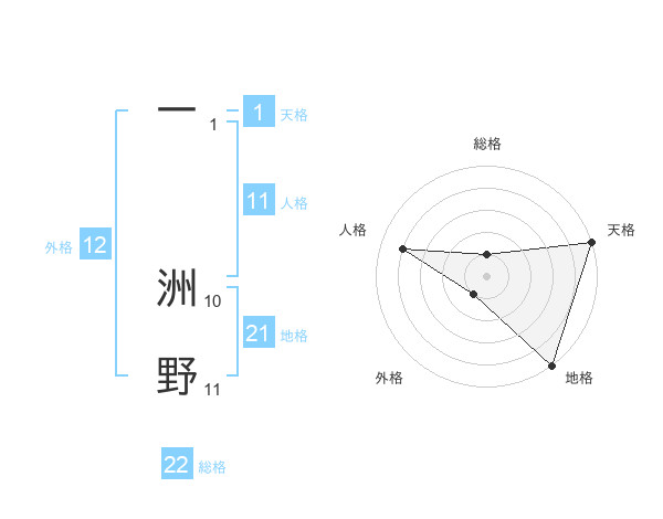 一 洲野さんの総格は22画の1点!