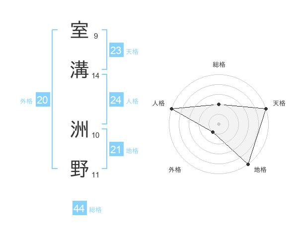 室溝 洲野さんの総格は44画の2点!