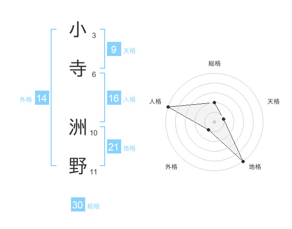 小寺 洲野さんを姓名の画数から五運を鑑定