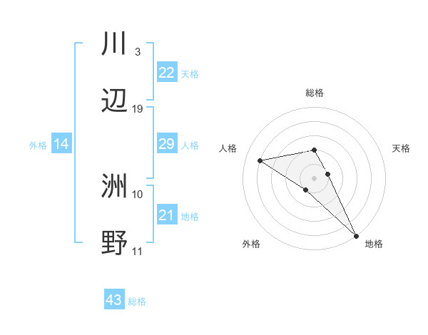川辺 洲野さんの総格は43画の2点!
