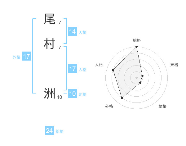 尾村 洲さんの総格は24画の5点!
