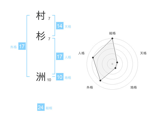 村杉 洲さんの外格は17画の4点!