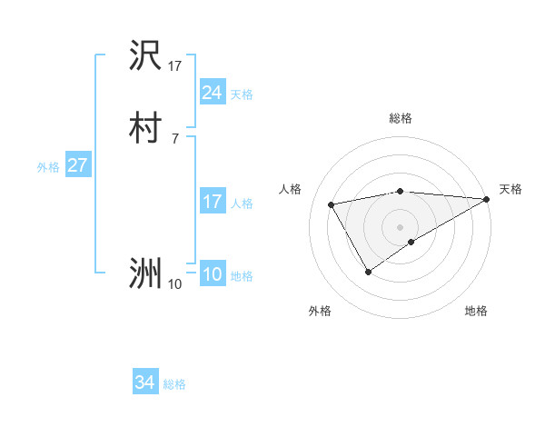 沢村 洲さんの総格は34画の2点!
