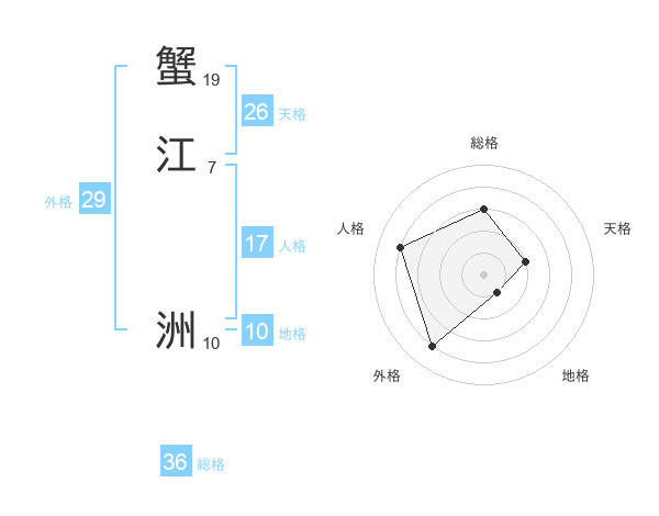 蟹江 洲さんの天格は26画の2点!