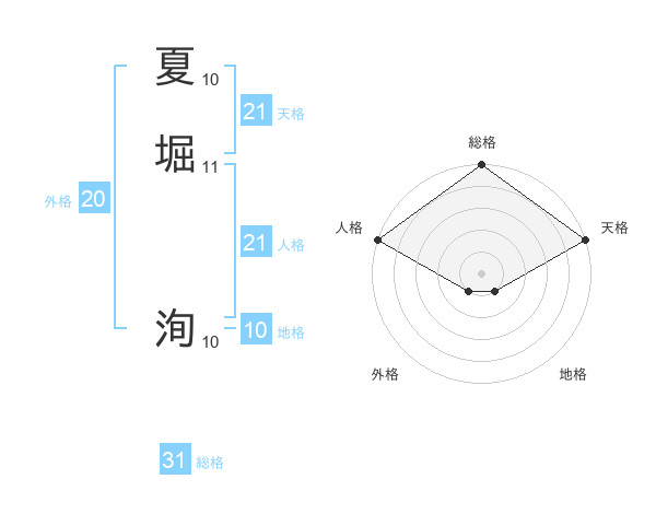 夏堀 洵さんの総格は31画の5点!