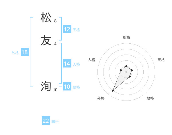 松友 洵さんの総格は22画の1点!