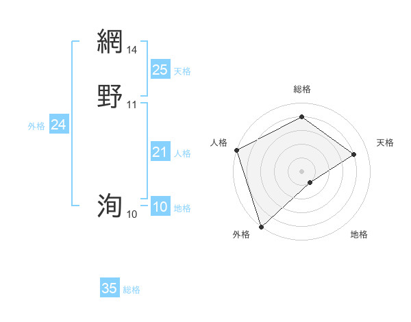 網野 洵さんの天格は25画の4点!