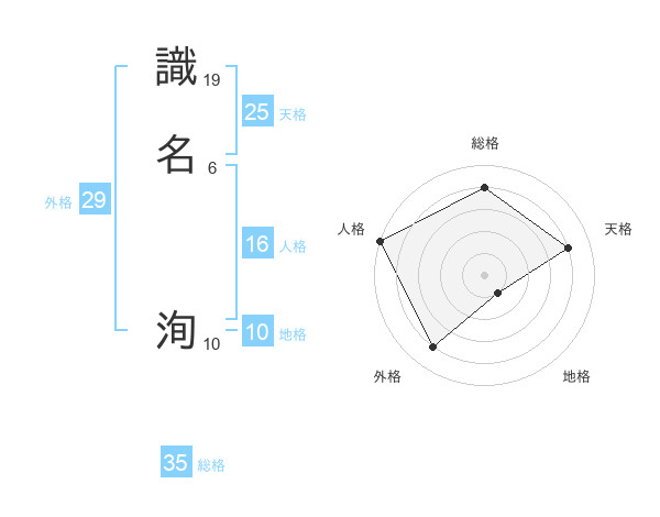 識名 洵さんの総格は35画の4点!