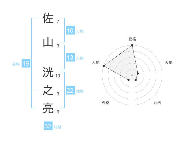 佐山 洸之亮さんの総格は32画の5点!