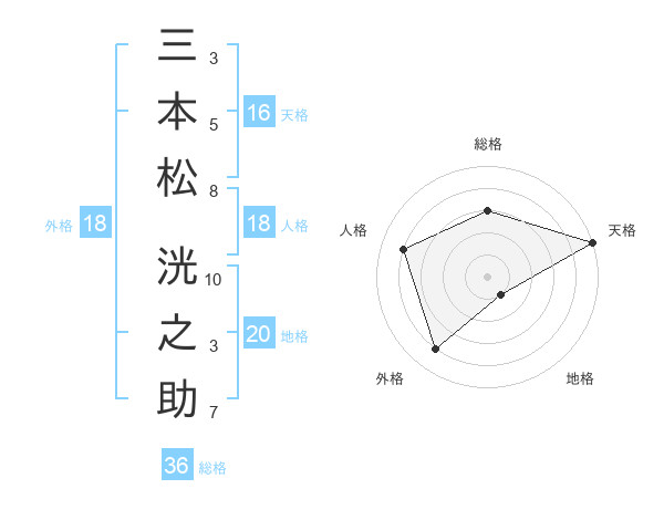 三本松 洸之助さんを姓名の画数から五運を鑑定