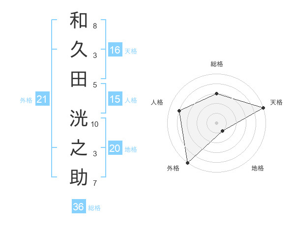和久田 洸之助さんの外格は21画の5点