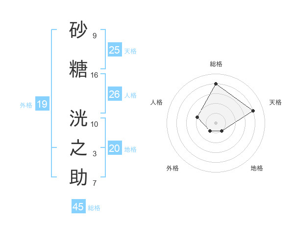 砂糖 洸之助さんの総格は45画の4点!