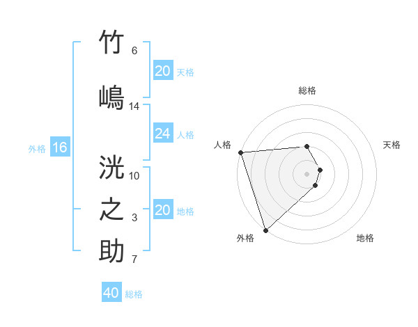 竹嶋 洸之助さんの天格は20画の1点!