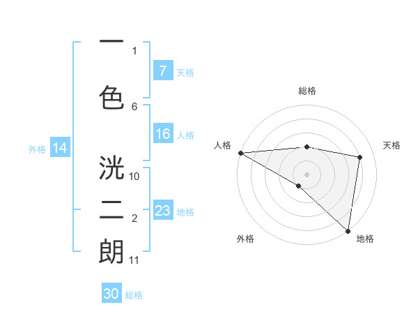 一色 洸二朗さんの地格は23画の5点!