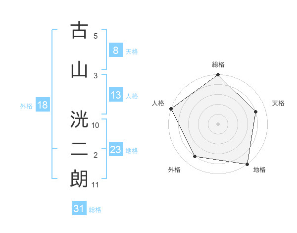 古山 洸二朗さんを姓名の画数から五運を鑑定
