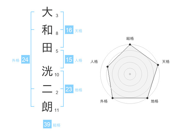 大和田 洸二朗さんを姓名の画数から五運を鑑定