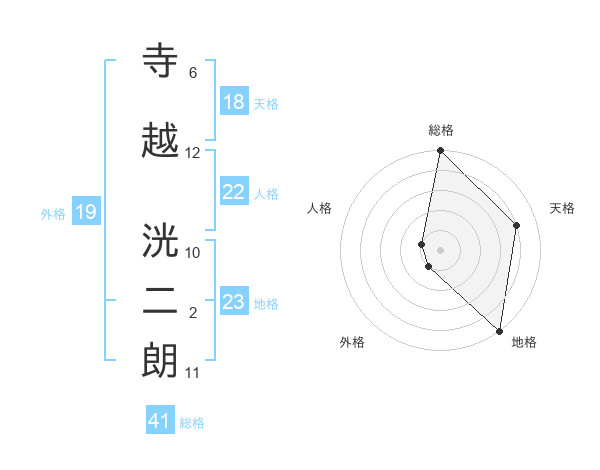 寺越 洸二朗さんの総格は41画の5点!