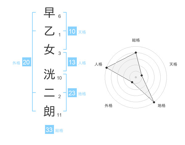 早乙女 洸二朗さんを姓名の画数から五運を鑑定