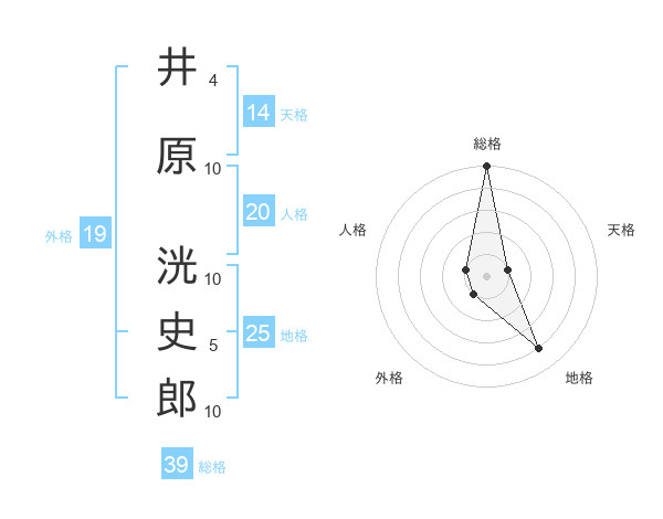 井原 洸史郎さんを姓名の画数から五運を鑑定