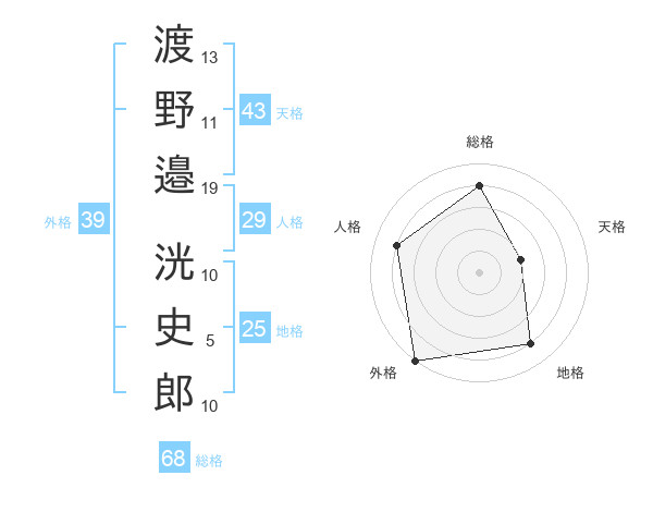 渡野邉 洸史郎さんを姓名の画数から五運を鑑定